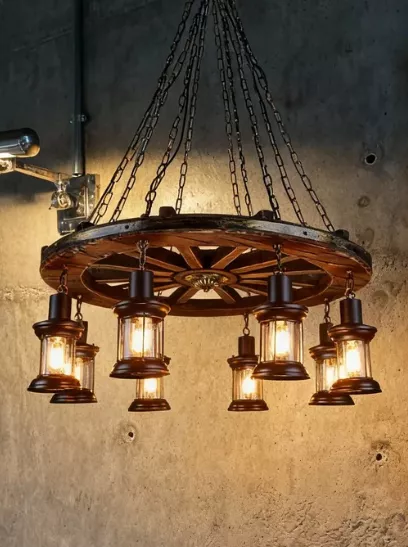 JY20029A-Loft复古工业风船木个性装饰吊灯