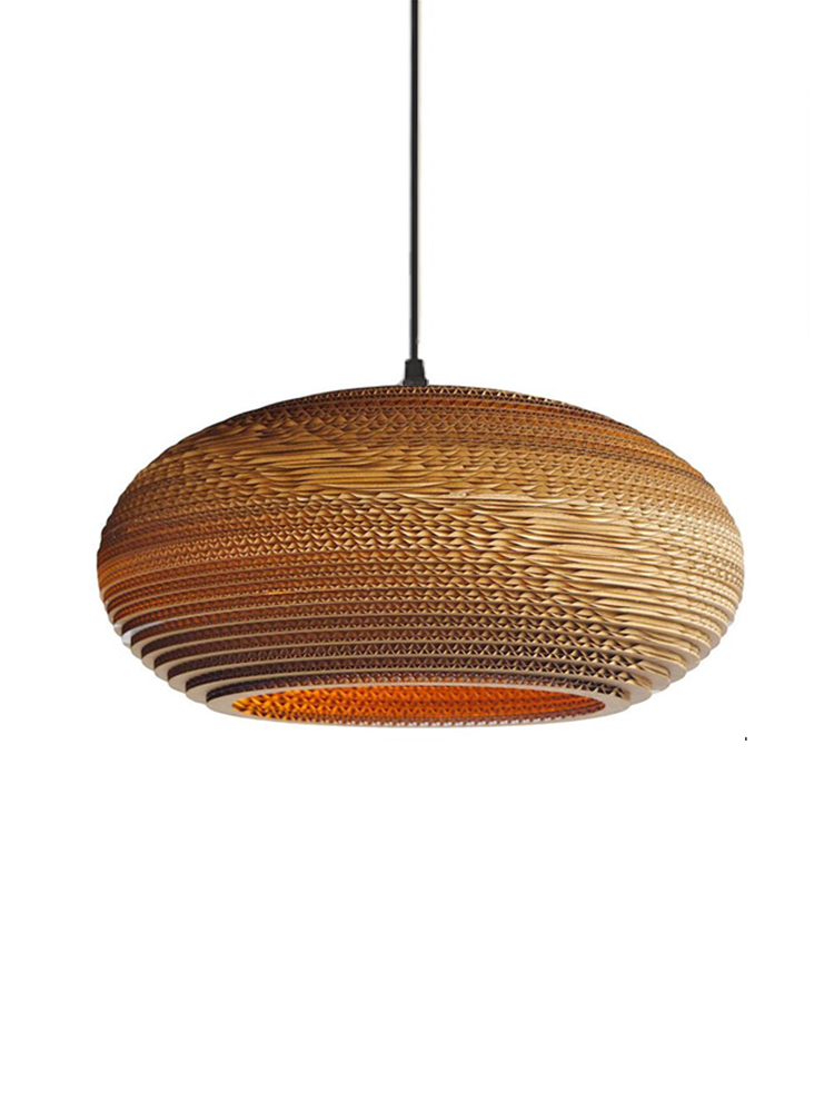 瓦楞纸艺的设计使灯具更加轻盈,给人一种悠然自得的感觉。