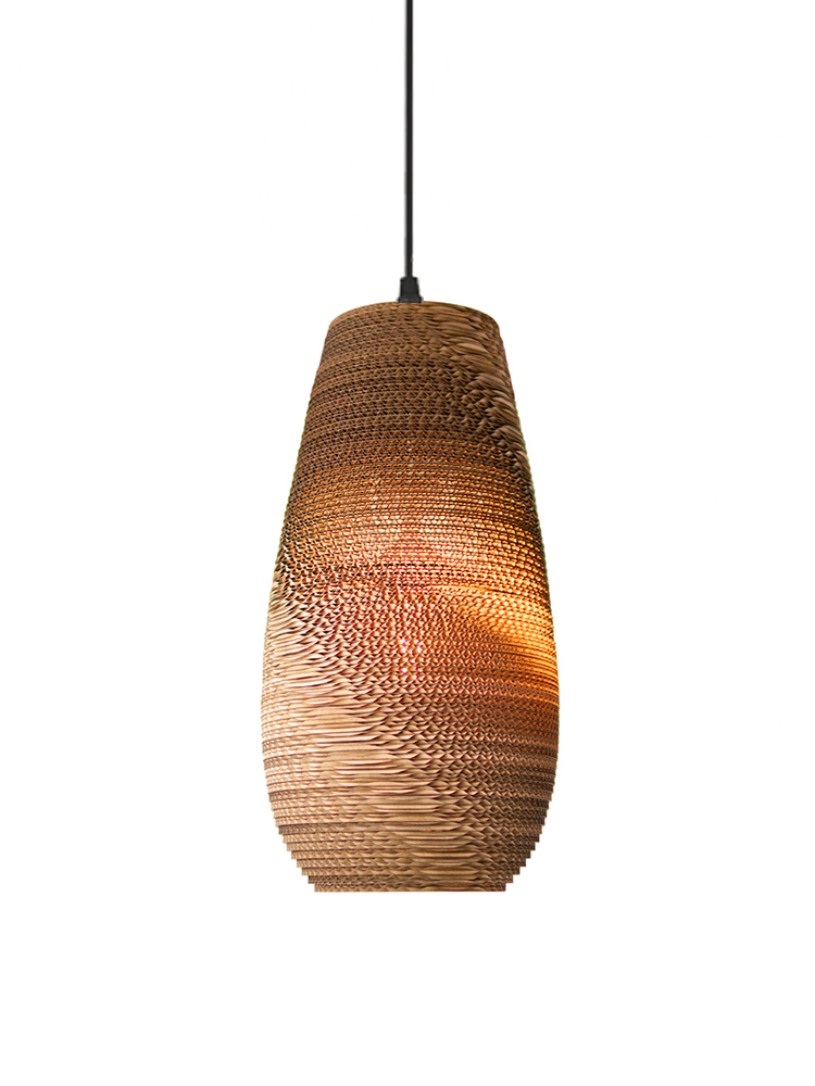 瓦楞纸艺的设计使灯具更加轻盈,给人一种悠然自得的感觉。
